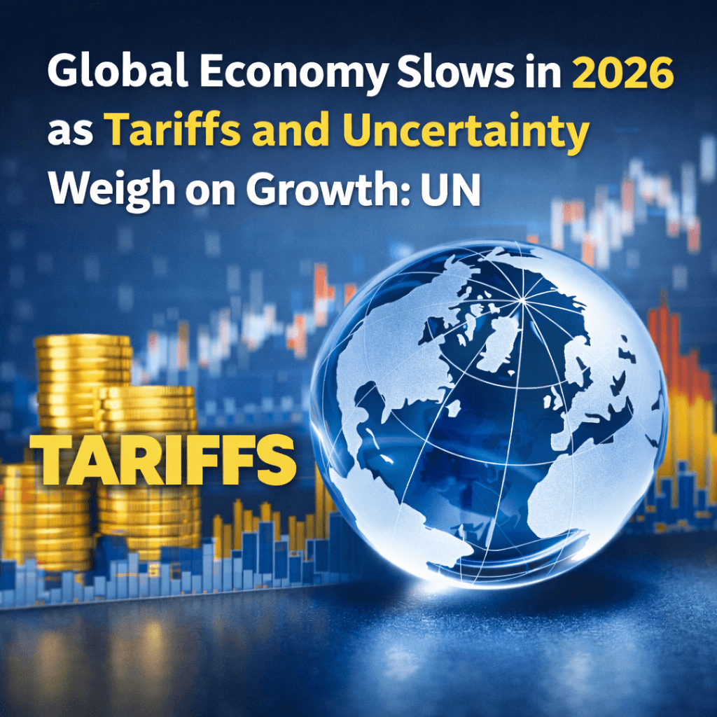 The UN projects slower global economic growth in 2026 as rising U.S. tariffs, geopolitical tensions, and trade uncertainty weigh on major and emerging economies worldwide.